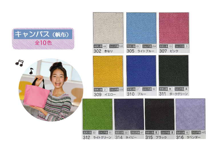 【302】きなり, 【305】ライトブルー, 【307】ピンク, 【309】イエロー, 【310】ブルー, 【311】ダークグリーン, 【312】ライトグリーン, 【314】ネイビー, 【315】ブラック, 【316】ラベンダー, 【希望品】クリアボビン(1個)