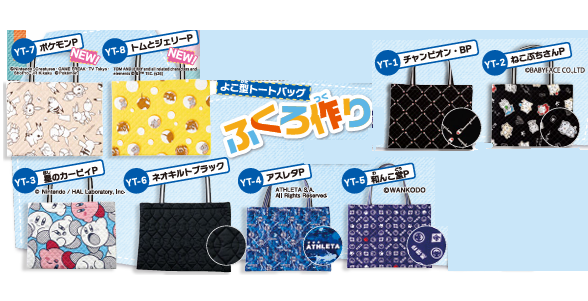 【YT-1】チャンピオン・BP, 【YT-2】ねこぶちさんP, 【YT-3】星のカービィP, 【YT-4】アスレタP, 【YT-5】和んこ堂P, 【YT-6】ネオキルトブラック, 【YT-7】ポケモンP, 【YT-8】トムとジェリー