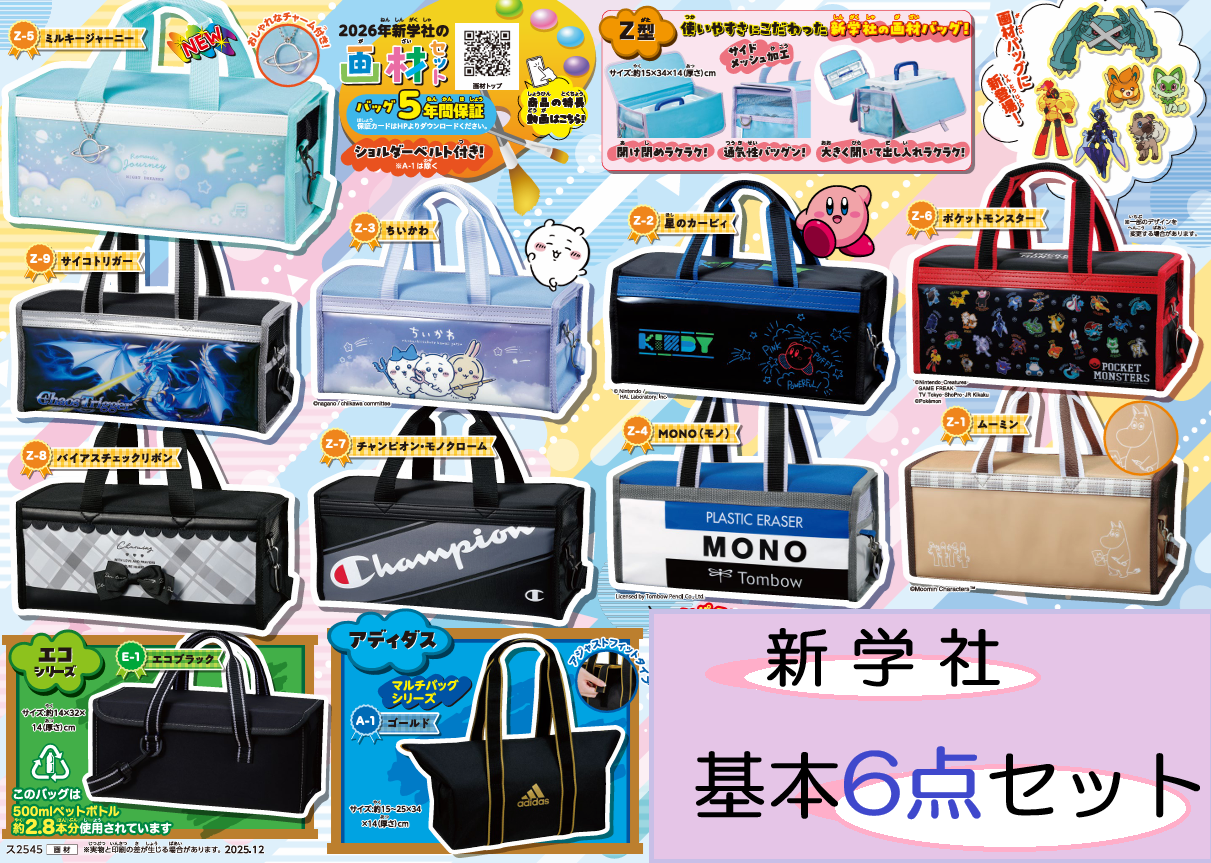 【1461】E-1.エコブラック, 【1401】Z-1.ムーミン, 【1402】Z-2.星のカービィ, 【1411】Z-3.ちいかわ, 【1408】Z-4.MONO(モノ), 【1415】Z-5.ミルキージャーニー, 【1406】Z-6.ポケットモンスター, 【1412】Z-7.チャンピオン・モノクローム, 【1413】Z-8.バイアスチェックリボン, 【1414】Z-9.サイコトリガー, 【1435】A-1.アディダス・ゴールド